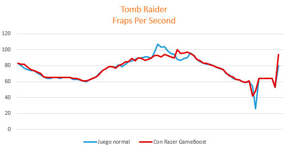 Empezamos con las pruebas con Tomb Rider, viendo sus FPS o frames por segundo con y sin Razer activado.